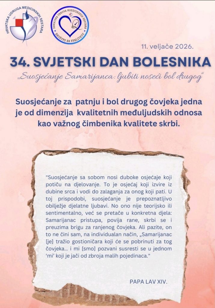 ˝Suosjećanje Samarijanca: ljubiti noseći bol drugog˝ ovogodišnja je tema koju je papa Lav XIV. odabrao za 34. Svjetski dan bolesnika koji se slavi 11. veljače, na blagdan Gospe Lurdske. Dan bolesnika obilježava se s ciljem podizanja svijesti o važnosti ljudske solidarnosti i brige za zdravlje svih ljudi, posebno onih koji se suočavaju s različitim bolestima i zdravstvenim poteškoćama.