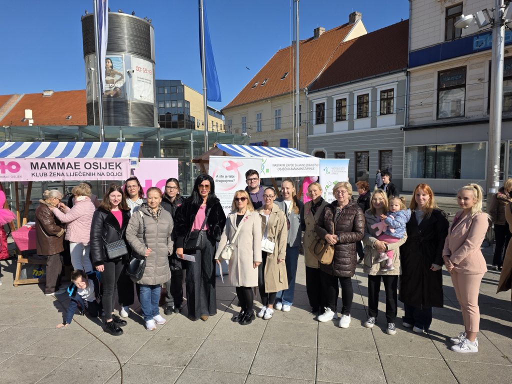 U Osijeku dana 04.10.2025. godine obilježen je 26. dan ružičaste vrpce okupljanjem na glavnom osječkom Trgu Ante Starčevića. Cilj humanitarne akcije je podizanje svijesti o važnosti ranog otkrivanja raka dojke, ali i samom liječenju, te održavanju zdravog i kvalitetnog načina života prije svega. Humanitarna akcija okupila je zdravstvene djelatnike KBC-a Osijek, brojne druge zdravstvene djelatnike, razne udruge, Klub žena liječenih na dojci Mammae Osijek, te građane svih dobnih skupina. Mjesec listopad obojan je u ružičastu boju sa najsnažnijom porukom, obojan je u čast i podršku svim oboljelima od raka dojke! Uz ružičastu boju, listopad obilježavaju i 4 vrlo snažne riječi: NADA, BORBA, POBJEDA i LJUBAV.