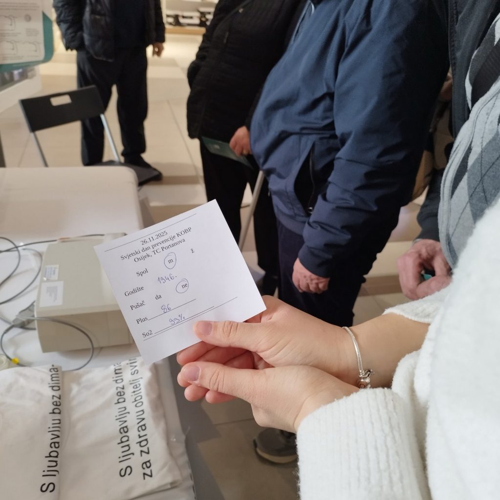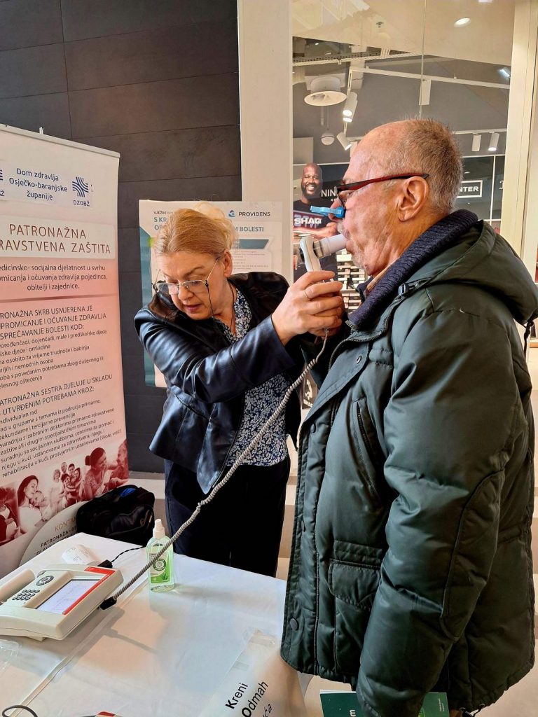 U trgovačkom centru Portanova, dana 26.11.2025. u vremenu od 10.00 do 13.00 sati, svim zainteresiranima sugrađanima ponuđeno je izvođenje spirometrije, mjerenje zasićenosti krvi kisikom te savjetovanje s pulmološkim timom koji se sastojao od liječnika specijaliste pulmologa i iskusne pulmološke medicinske sestre.